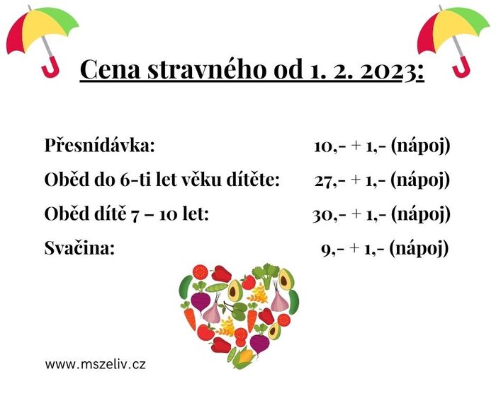 a potravin od dodavatelů, jsme nuceni od 1. 2. 2023 navýšit cenu stravného pro děti v MŠ.